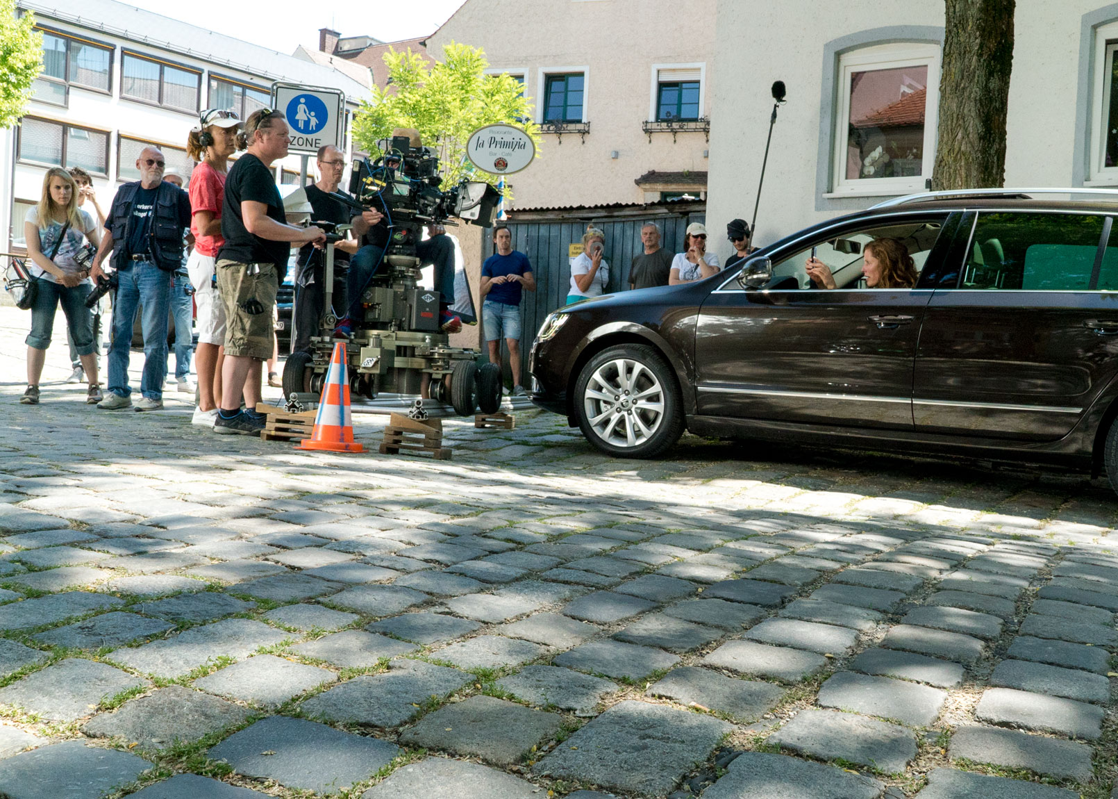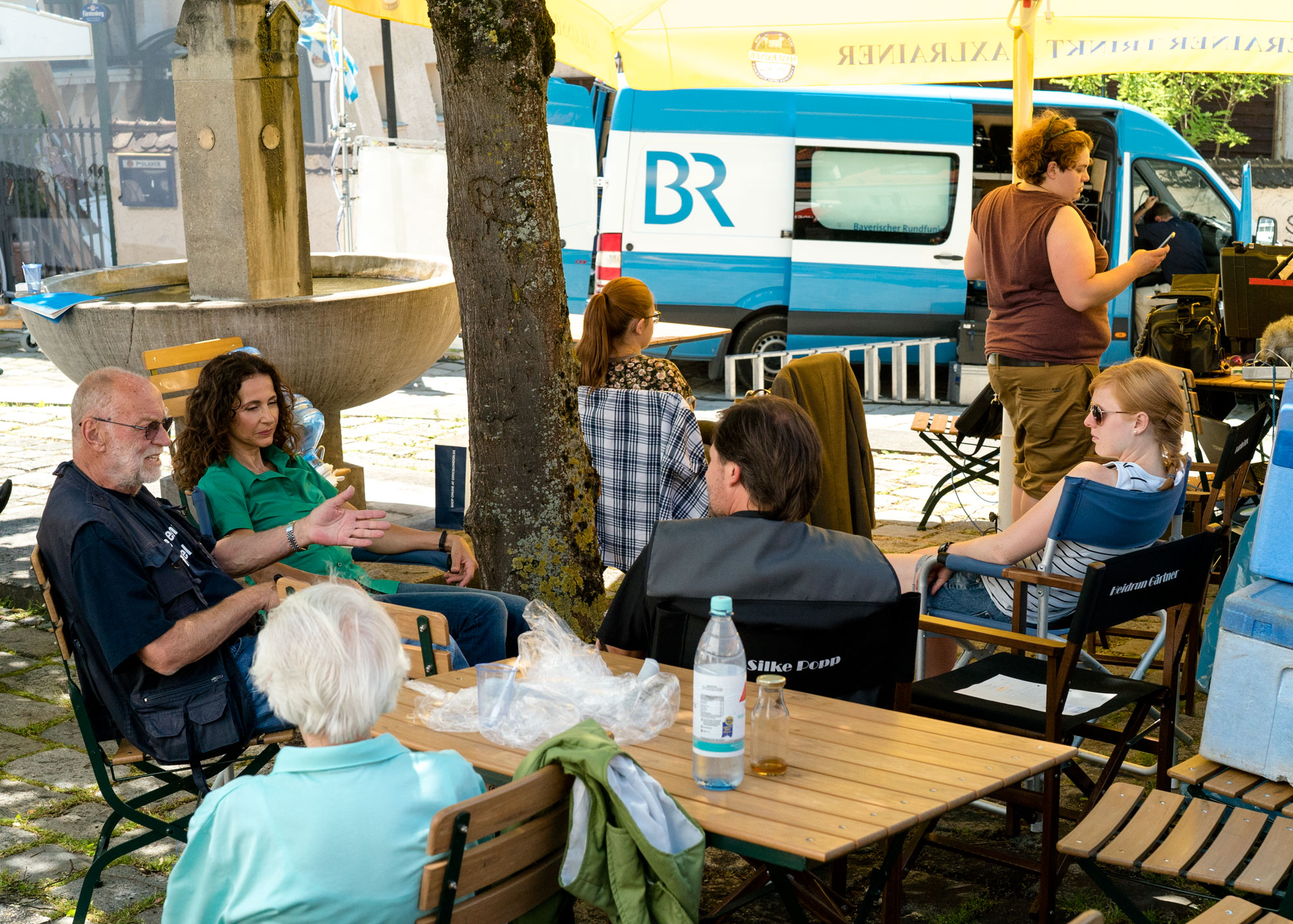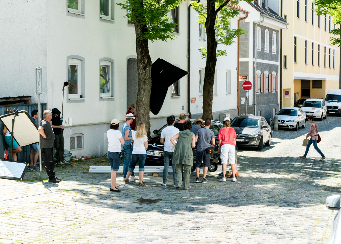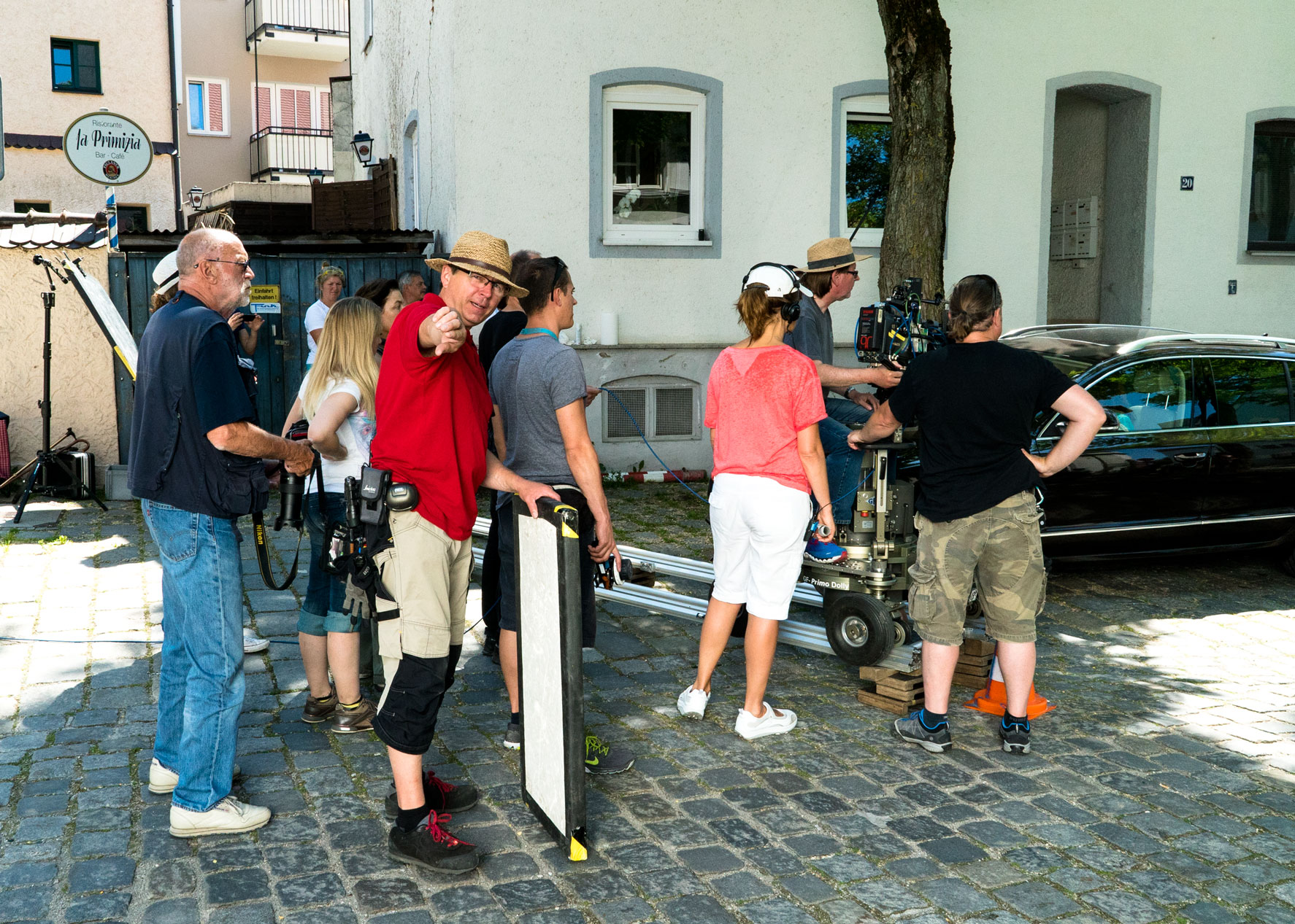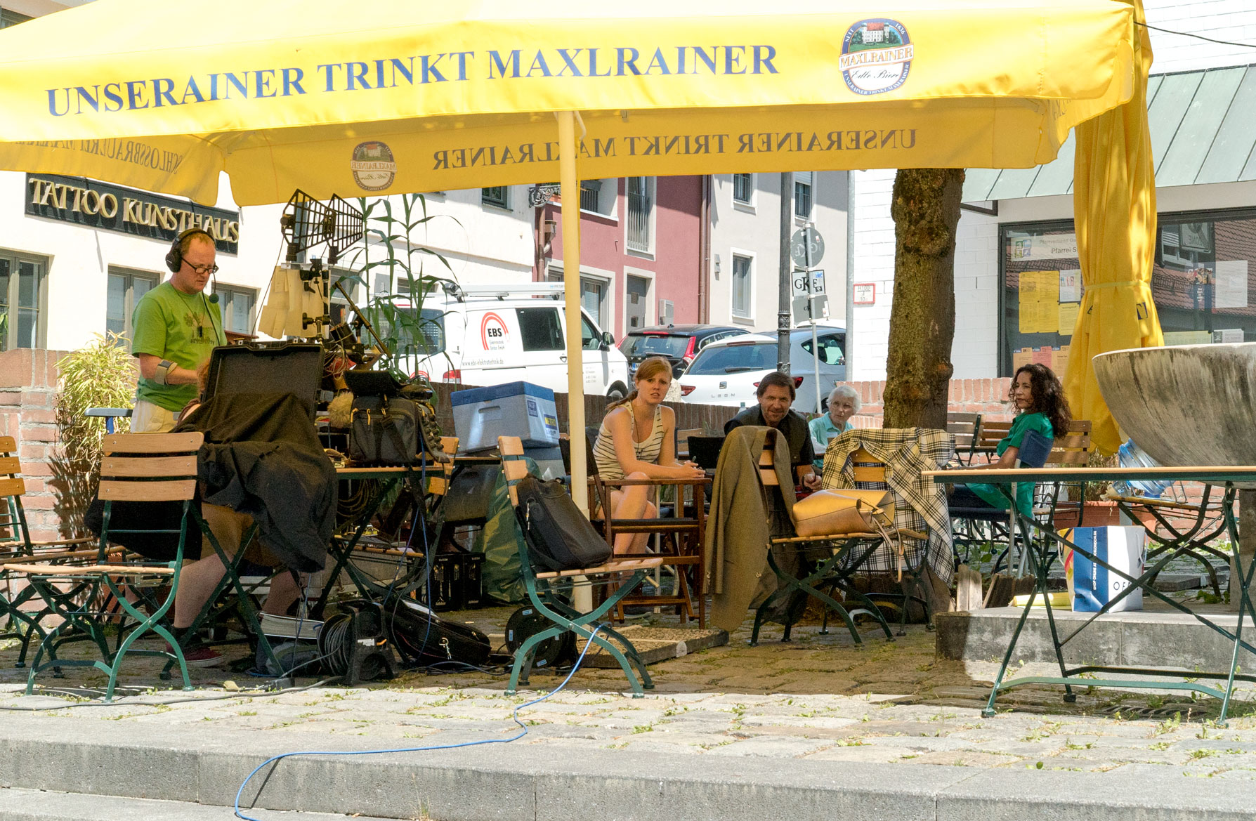 Ein sonniger Tag in Dachau mit Temperaturen nahe der 30 Grad. Das Dahoam is Dahoam Team steht in Dachau für Dreharbeiten zur Folge 1558. Funny Lechner gespielt von Katrin Lux, Annalena Brunner gespielt von Heidrun Gärtner und Hannes Denzinger gespielt von Winfried Frey auch bekannt als Hans Kneidl aus der Serie München 7 sind heute beim Aussendreh mit dabei.